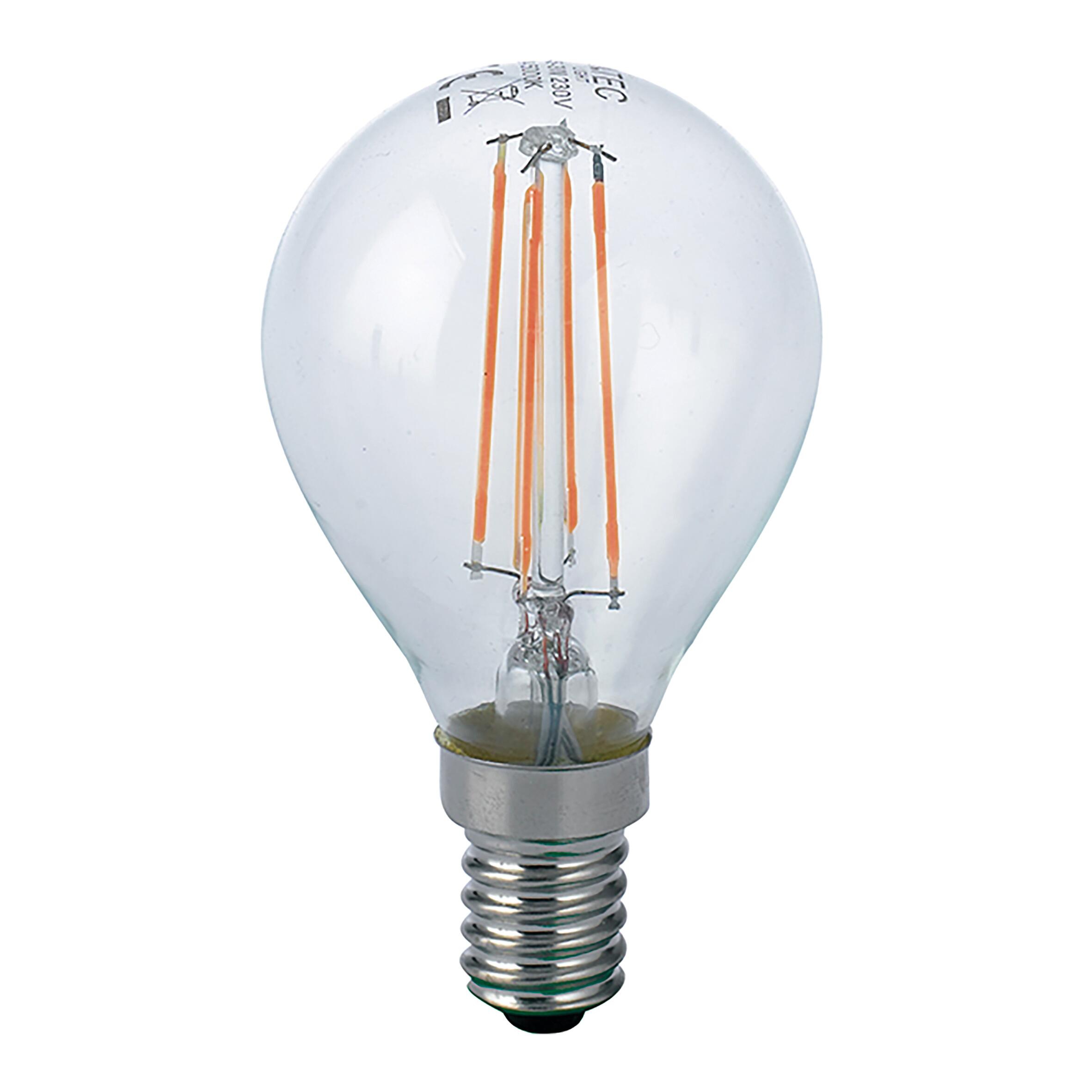 Lampadina LED filamento, E14, Globo, Trasparente;