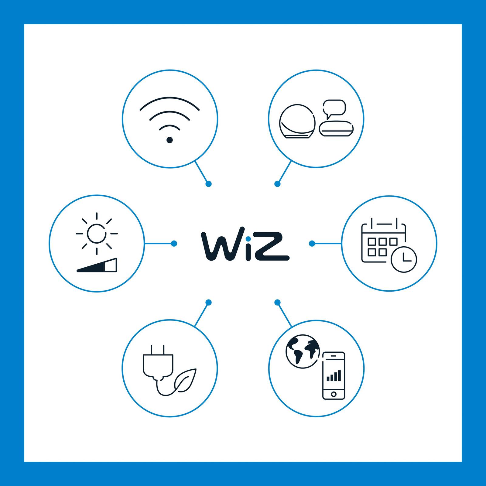 non sono necessari bridge o gateway - Controllabile tramite smartphone o tablet con l'app WiZ - In alternativa controllabile con il telecomando WiZ (vedi accessori) - Controllo vocale possibile con Amazon Alexa, Apple HomeKit (Siri) o Google Assistant - vari. Funzioni App: commutazione diretta e dimmerazione;