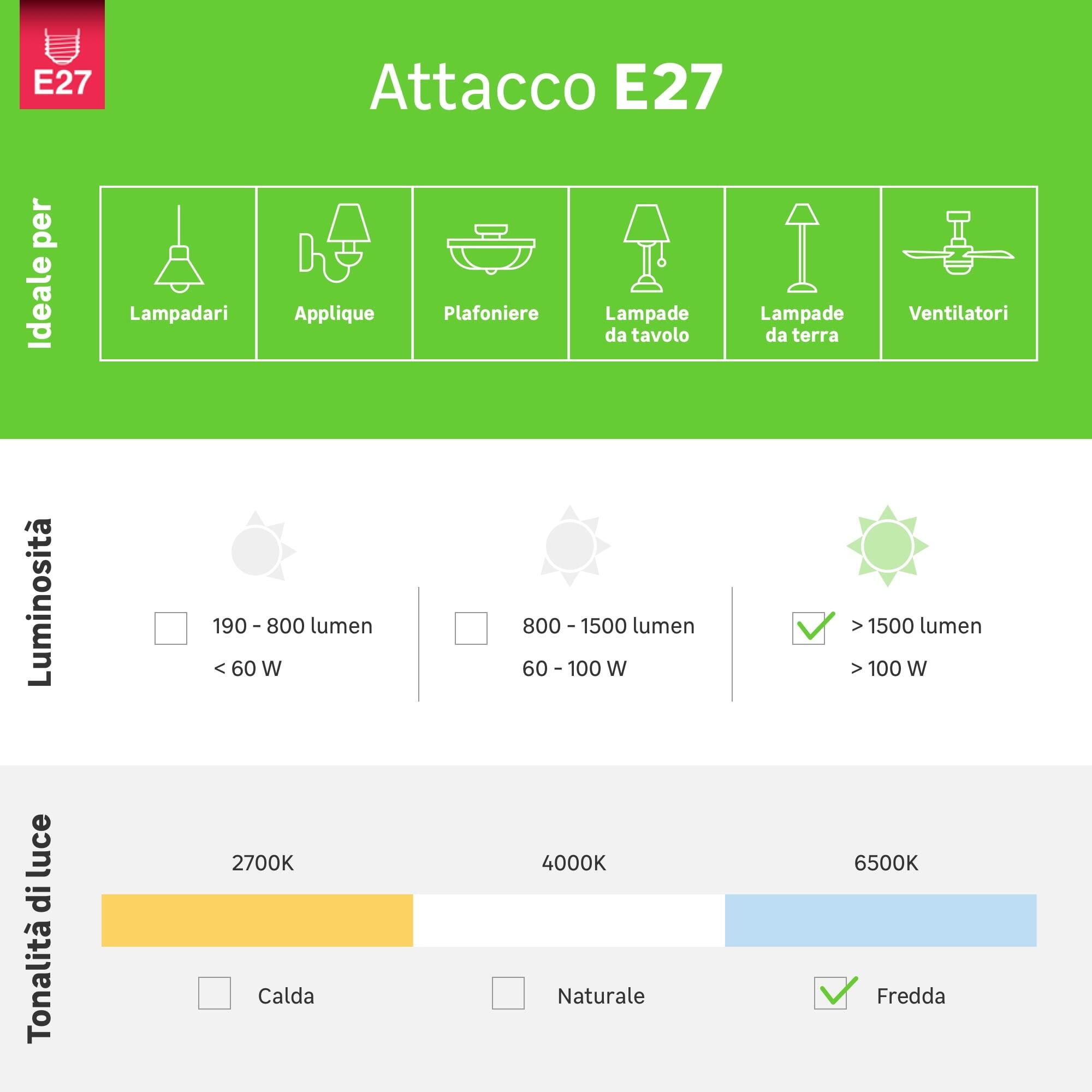 Lampadina LED, con durata fino a 15.000 ore. Ideale per creare una luce diffusa nella stanza. Luce fredda, ideale per cogliere meglio i particolari e visualizzare più nitidamente gli oggetti