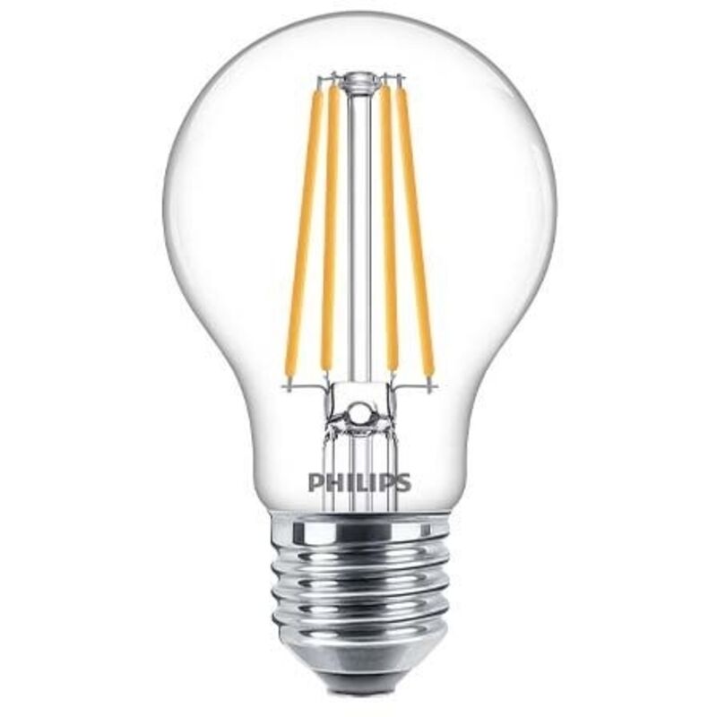 Lampadina goccia filamento Led Philips con le seguenti caratteristiche: Tensione: 220-240V Potenza: 8.5W Attacco E27 Temperatura di colore: 2700 Kelvin (luce calda) Classe energetica E Non dimmerabile Caratterizzate da un design classico, queste lampadine LED CorePro a filamento combinano le forme classiche delle lampadine a incandescenza e i vantaggi della tecnologia LED a lunga durata. Una scelta molto semplice per le persone che cercano una sostituzione LED retrofit, queste lampadine LED a elevata emissione di lumen garantiscono un risparmio energetico del 90% rispetto alle lampadine tradizionali. Le lampadine CorePro LED a elevata emissione di lumen forniscono un'eccellente qualità della luce. Illuminazione a LED a risparmio energetico che offre una durata di 15.000 ore per ridurre i costi di manutenzione. Caratteristiche: Durata nominale: 15000 ore Corrente lampada: 70 mA Wattaggio equivalente: 75W Efficienza luminosa (specificata) (Nom) 124,00 lm/W Uniformità del colore