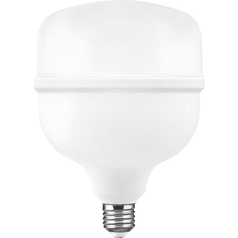 Lampadina LED industriale MATEL E27 50W. Include chip LED SAMSUNG all'interno. Classificazione energetica F. Risparmia fino al 90% % energia. Accensione elettronica istantanea e prestazioni elevate. Angolo di apertura della luce non inferiore a 220°. Corpo in PC con interno in alluminio e cover opaca. Durata media fino a 40.000 ore. Lampadina a luce fredda (6400K) e 5000 lumen. Collegamento 176-264V, non richiede trasformatore aggiuntivo.