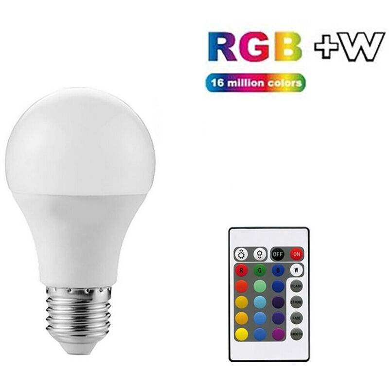 Lampadina Led a Bulbo Attacco E27 Potenza 9W Dimmerabile RGB 16 colori e bianco, con telecomando, 4 modalità di funzionamento, angolo di apertura 180° MAGGIORI INFORMAZIONI Caratteristiche principali: Potenza: 9W Colore Temperatura: RGB + White Voltaggio: AC90-260V Angolo di apertura: 180° Tipo di attacco: E27 La confezione contiene: Nr.1 Lampada RGBW 9W Nr.1 Telecomando