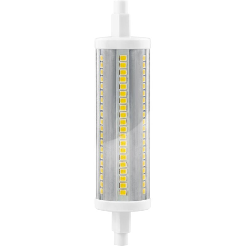Lampadina LED lineare MATEL 118mm 16W. Classificazione F, risparmio energetico fino al 90%. Design con diametro di 29 mm. Accensione elettronica istantanea e rendimento elevato. Angolo di apertura della luce di 360°. Corpo in PC bianco con interno in alluminio e copertura trasparente. Lampadina con temperatura di colore di 6400K ( freddo). Durata media fino a 30.000 ore. Installazione diretta, non è necessario alcun trasformatore aggiuntivo. Ideale per ambienti in cui è necessaria maggiore chiarezza: cucine, bagni, ecc.