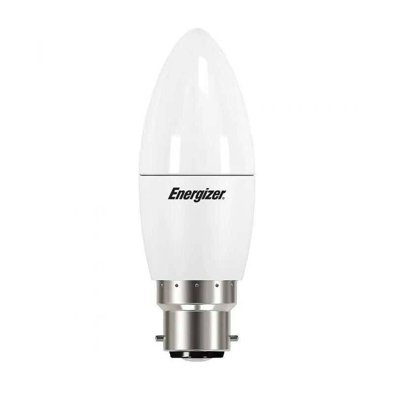Lampadina a LED B22, 470 Lumen, 5.2W/40W, 2700 k ENERGIZER rif: ES8699 B22 = tappo a baionetta o a cigno. Bianco caldo. Durata: 15.000 h (15 anni = 2,7 h / giorno) Accensione istantanea Lumen: 470 Corrente: 47mA Dimensione: 97mm / 35 mm Codice di classe energetica: A+ (6 kWh / 1000 h)