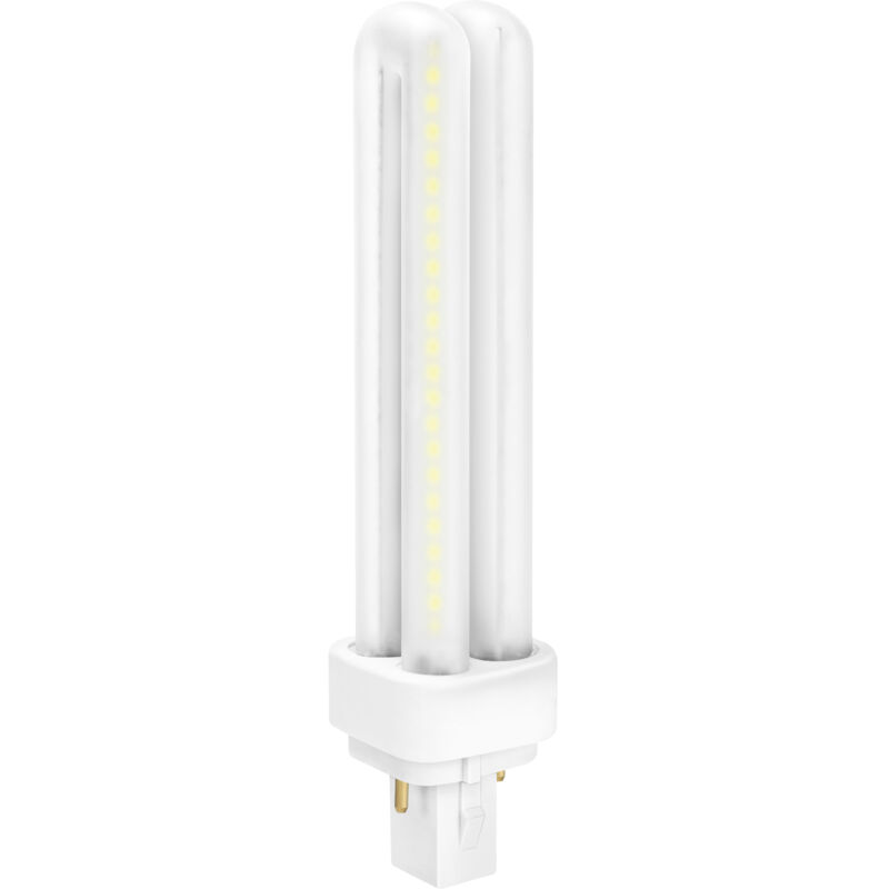 Lampadina LED MATEL PLC G24 9W. Classificazione F, risparmio energetico fino al 90%. Accensione elettronica istantanea e prestazioni elevate. Angolo di apertura della luce di 360°. Corpo in PC bianco con interno in alluminio e copertura fumè. Lampadina con temperatura di colore 4000K (neutra). Vita utile media fino a 30.000 ore. Installazione diretta, non richiede trasformatore aggiuntivo. Ideale per aree studio, uffici, locali commerciali, ecc. li>
