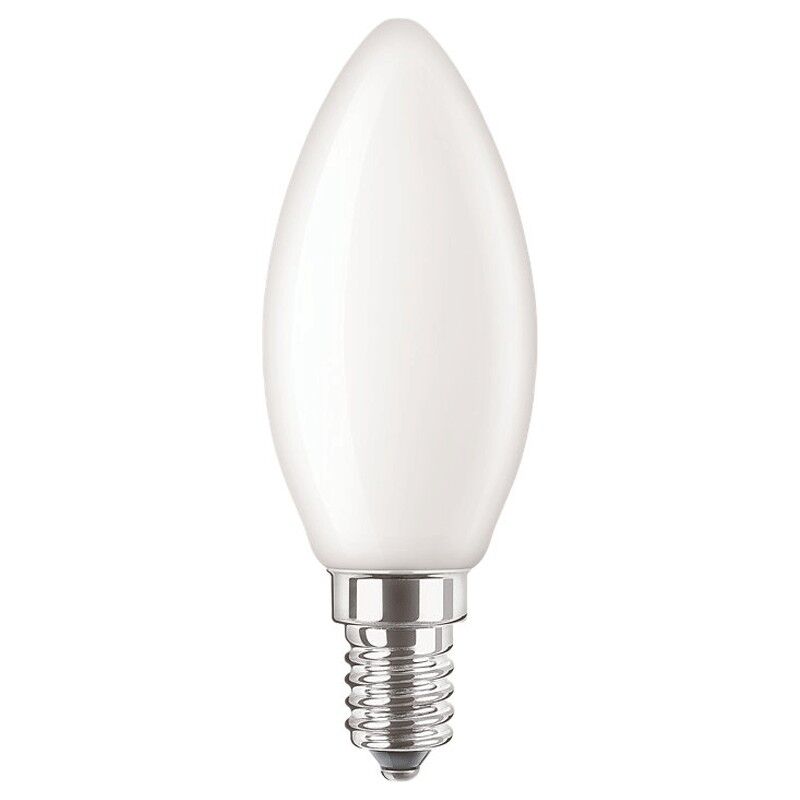 Lampadina Oliva LED Philips CorePro LEDCandleND 4.3: Potenza 4,3W Luce calda 2700K Attacco E14 Non dimmerabile Finitura lampadina: smerigliata 470 lumen Classe di efficienza energetica F Caratteristiche: Conformità a RoHS EU Sì Durata nominale (Nom) 15000 h Efficienza luminosa (specificata) (Nom) 109,00 lm/W Uniformità del colore