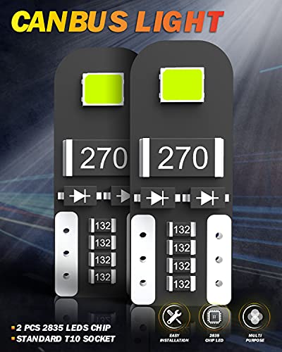 ★ 【Nuova Generazione Di Aggiornamenti】 La lampadina LED Canbus W5W T10 non è un errore dopo l'installazione del 99% dei veicoli. Aggiorna il chipset e l'elemento elettronico per una lunga durata, rapida dissipazione del calore, basso consumo energetico, 300% più luminoso della lampada alogena, facile installazione, basta collegare e riprodurre.