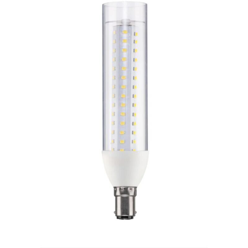 Lampadina led Paulmann B15d 9.5W 2700K - 28889 Lampadina led trasparente in plastica -Tipo attacco: B15d -Potenza: 9.5 W -Temperatura colore: 2700 K -Tensione: 230 V -Flusso luminoso: 1055 lm -Indice di resa cromatica: > 80 -Durata media: 15000 ore Dimensioni: 165x36 mm Classe di efficienza energetica: E Tecnologia: Led Attacco: B15d Gradi Kelvin (K): 2700K (codice colore 827) Temperatura Colore: Luce calda Dimmerabile (Regolabile): No Potenza Assorbita (W): 9.5 Flusso Luminoso (Lumen): 1055 Garanzia (Anni): Di Legge Tempo di Accensione al 100%: Immediato Grado di Protezione (IP): IP20 (lampadina da interno oppure da esterno se montata in apposito corpo illuminante) Numero di pezzi nella confezione: 1 Durata (Ore): 15000 Dimensioni (Cm): 16.5x3.6 Lumen: 1000-1999 lm Voltaggio: 230 V