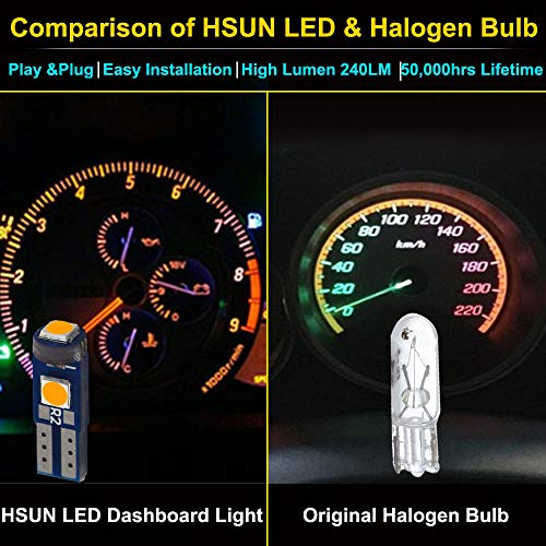 Hsun T5 74 73 2723 2721 base LED Lampadina con 3 pezzi LED SMD cuneo lampadina LED per auto auto cruscotto strumento luce di lettura pannello del computer lampada 12 V 50LM (T5-Ambra)