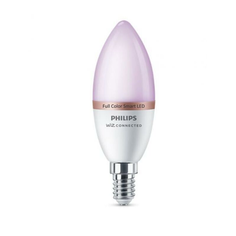 Lampadina led C37 Philips consumer 929002448821 37240500- E14 4,9W 2200-6500K- RGB-wiz È una lampadina WiZ Connected. Usa il Wi-Fi esistente per controllarla con l'app WiZ o con la tua voceTecnologia Wi-Fi SmartDimmerabile Con regolazioni specifiche Tecnologia: Led Attacco: E14 Alimentazione: 220-240V Gradi Kelvin (K): regolabili (tra calda, fredda e colorata) Dimmerabile (Regolabile): Si, tramite dimmer esterno Potenza Assorbita (W): 4,9 Potenza Resa (W): 40 Flusso Luminoso (Lumen): 470 Garanzia (Anni): Di Legge Tempo di Accensione al 100%: Immediato Grado di Protezione (IP): IP20 (lampadina da interno oppure da esterno se montata in apposito corpo illuminante) Numero di pezzi nella confezione: 1 Durata (Ore): 15.000