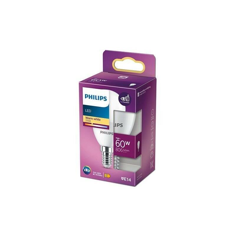 Lampadina a led philips sfera 60w e14 2700k, luce calda forma della lampada: sfera attacco e14 tecnologia led luce calda 27 k flusso luminoso nominale 86 lm potenza nominale 7 w wattaggio lampada equivalente 6 w tempo di accensione