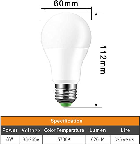 【 Lampadina LED di qualità superiore 】 8 W 8 realizzata in alluminio puro di alta qualità e con un eccellente materiale di componenti elettrici. A prova di ruggine, resistente alle cadute d'acqua, durevole. L'indice dello schermo alto può mostrare i colori reali sotto la luce. Vita di servizio fino a 50.000 ore.
