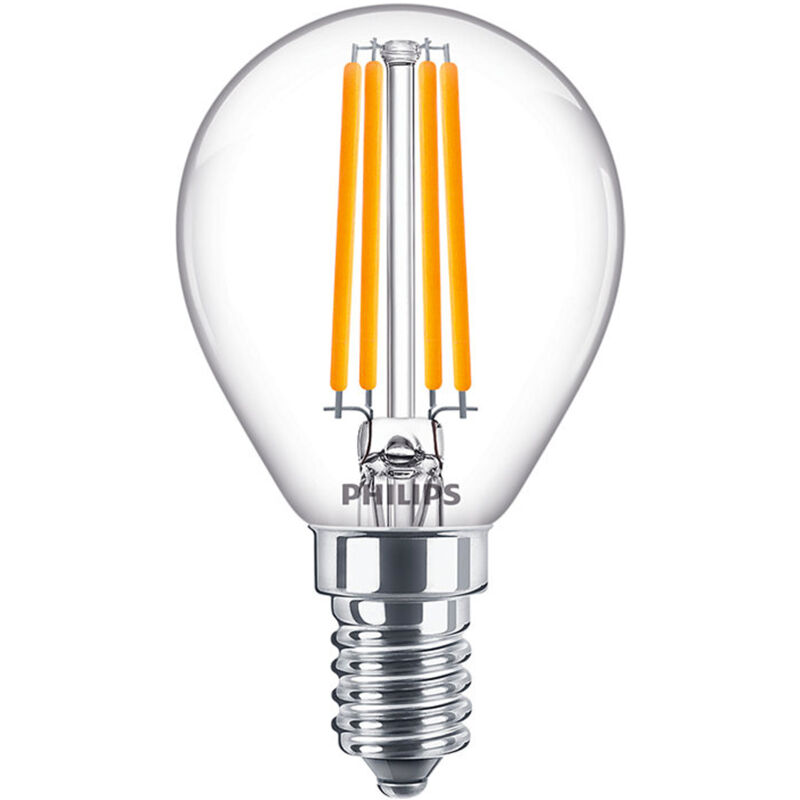 Lampadina Sfera filamento LED CorePro Philips con le seguenti caratteristiche: Potenza: 6,5W (Wattaggio equivalente 60W) Tensione: 220-240V Attacco: E14 806 lumen Temperatura del colore: 2700K (luce calda) Consumo energetico kWh/1000 h: 7 kWh Classe energetica E Non Dimmerabile Caratterizzate da un design classico, queste lampadine a LED a filamento combinano le forme classiche delle lampadine a incandescenza e i vantaggi della tecnologia LED a lunga durata. Le lampadine a LED rappresentano una scelta molto semplice per chi cerca una sostituzione LED retrofit e garantiscono un risparmio energetico del 90% rispetto alle lampadine tradizionali. Le lampadine in vetro CorePro LED forniscono un'eccellente qualità della luce per l'illuminazione delle scale. La lampadina a LED offre una durata di 15.000 ore per ridurre i costi di manutenzione. Caratteristiche: Frequenza di ingresso: Da 50 a 60 Hz Corrente lampada: 50 mA Tempo di avvio: 0,5 secondi Tempo di riscaldamento al 60% luce: 0,5