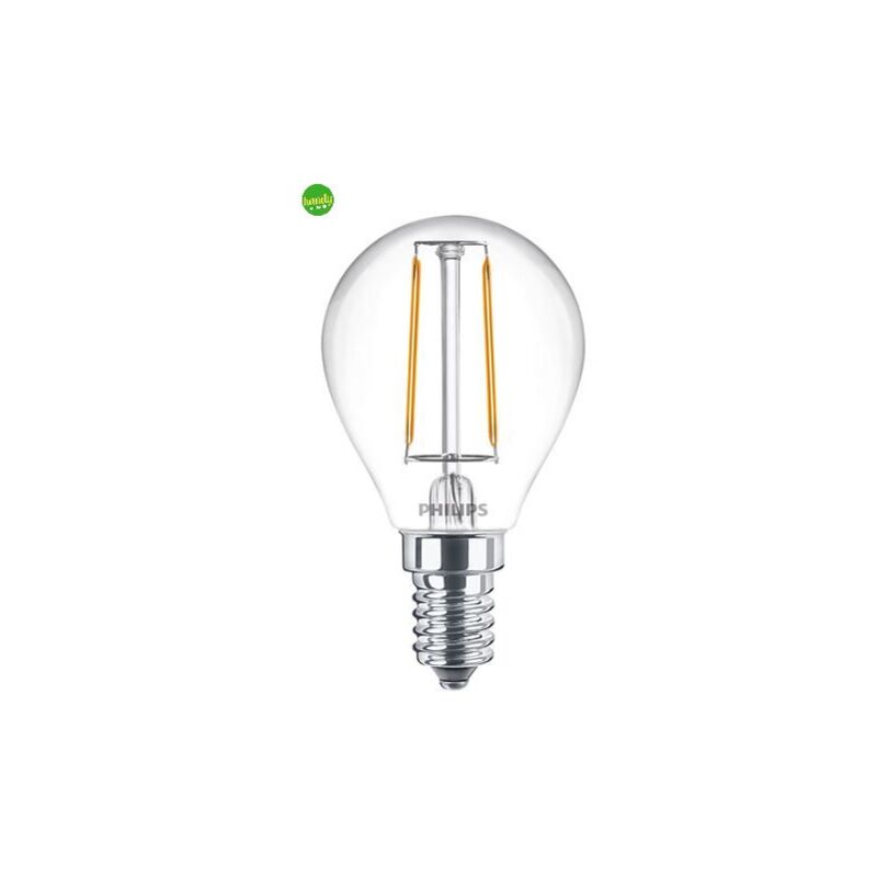 Lampadina led, dalla forma a sfera, con attacco E14, completamente trasparente, così da emulare il vecchio filamento ad incandescenza, sostituendolo però con un filamento verticale a LED, ottenendo così tutti i benefici del caso, ottenendo il miglior rapporto consumo / luce espressa ai vertici della categoria, racchiude in se una tecnologia all'avanguardia, concentrata tutta nel suo portalampada, che consente di sviluppare una luce istantanea pari a 25 Watt consumando soltanto 2,0 Watt generando 250 lumen di classica luce calda per un raggio di 360°, che le permetterà di essere utilizzata in plafoniere e lampadari donando all'ambiente circostante una luce che esaltai colori rendendo l'atmosfera calda e confortevole grazie al tono di luce calda.