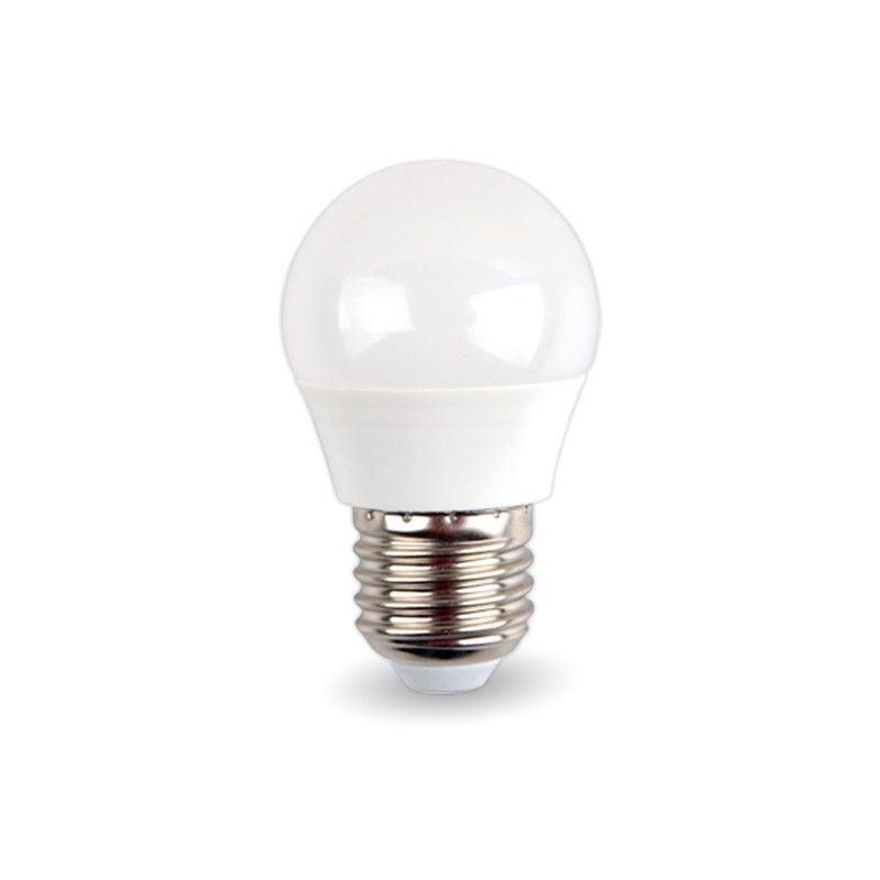 Lampadina a LED (o pallina da golf) E27 G45 Dimensione del globo: 4,5 cm Lumen: 470 (equivalente a circa 40 W) Accensione istantanea Base a vite E27 IP20 Consumo: 5,5 Watt Angolo: 200 ° Etichetta energetica A + Garanzia del produttore: 2 anni Conforme agli standard CE, RoHS, EMC Illuminazione di marca ARUM lumen: 470 Base: E27 Classe energetica: A Angolo: 200° Tutta la vita: 20.000 heures (donnée constructeur) Alimentazione: 220 Oscuratore: Non Potenza ripristinata: Env 40W Garanzia del produttore: 2 ans Puissance (W): 6 Tipo di globo: G45 Tipo di accensione: Istantaneo Finitura in vetro: Opaque Indice di resa cromatica: 80