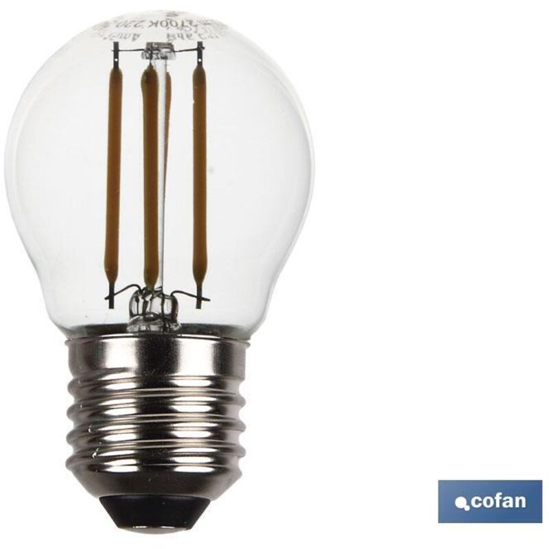 Lampadina LED Filamento sferica E27 4W 470 Lm 2700K Caratteristiche tecniche: w: 4 K: 2700 Lumen: 470 Fil.Filo: E27
