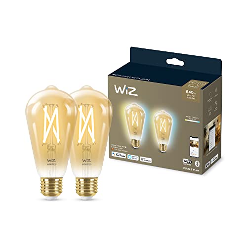 WiZ Lampadina Smart Wi-Fi, Luce Bianca da Calda a Fredda Dimmerabile, Filament Ambrata, E27, 2 PezziI, 6.5W, Tecnologia SpaceSense, Controllo Vocale (Alexa, Apple HomeKit, Google Home)