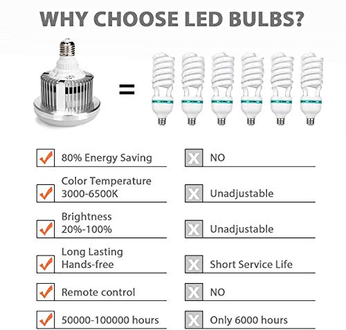Base standard E26/27: la base a vite standard E26/27 può essere utilizzata ovunque, adatta per soft light box, schermo fotografico e la maggior parte delle prese di illuminazione fotografiche, facile da sostituire. Nota: non toccare la lampadina subito dopo che è stata spenta.