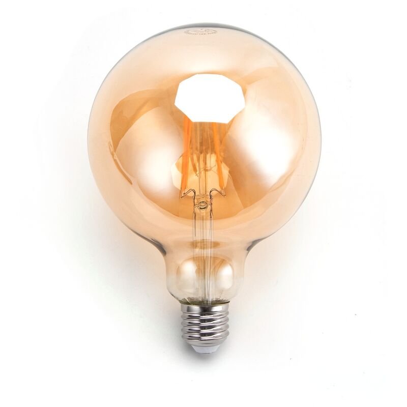 La lampadina a Led Vintage a Filamento con attacco E27, comunemente detto attacco grande, con forma G125 a globo 6W, corrispondente ad una tradizionale lampadina da 48W, è la miglior soluzione per contenere i consui e non intaccare le prestazioni.Le lampadine Led Vintage a filamento emulano l'aspetto e l'illuminazione delle lampadine tradizionali. Sono perfette per ricreare un'ambientazione vintage o come oggetti di design.Con una sorgente luminosa da 600 lumen, la lampadina è perfetta per illuminare piccoli ambienti o per creare atmosfera con una luce morbida e soffusa. La luce emessa dalla lampadina è di alta qualità grazie al suo indice di resa comatica (CRI) ≥80 ed ha un angolo di apertura del fascio luminoso di 300°.Con i suoi 2200K è una luce molto calda, praticamente arancione. Solitamente viene utilizzata come luce di riempimento o d'atmosfera..Le lampadine a globo, con la loro tipica forma sferica, sono versatili, con un carattere forte e un design riconosciblie. Si rivelano