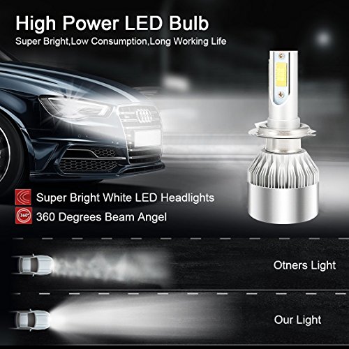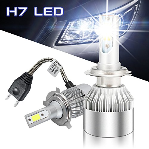 Hltd 72w H7 LED lampadine del faro, COB Chip 7200LM 6000K IP68 Lampade impermeabili bulbo Kit di conversione 12v Sostituire per lampade alogene o NASCOSTE (2pcs, bianco)