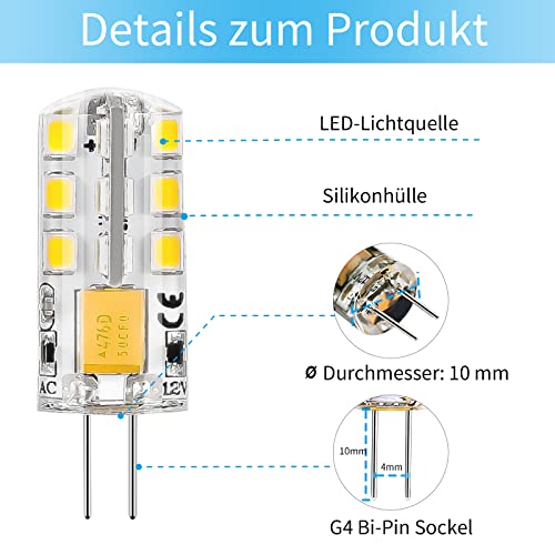 Lampadine LED G4,AC/DC 12V 1.8W Sostituiscono lampadine alogene da 20W,lampadina LED bianca fredda,lampadine LED G4 6000K,angolo del fascio 360° senza sfarfallio,130LM non dimmerabile,confezione da 10