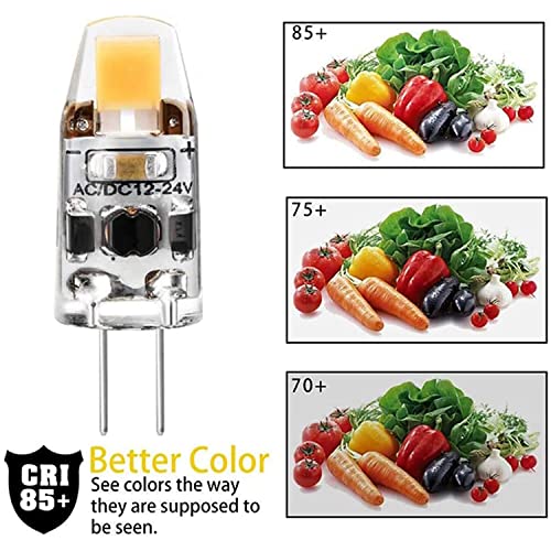 [Resa cromatica elevata] Protezione degli occhi: la lampada a LED G4 è dimmerabile, l'indice di resa cromatica estremamente elevato (Ra> 80) rende gli oggetti più vividi e gli oggetti più vividi. . Le lampadine LED G4 6000K Bianco freddo creano un'atmosfera calda e confortevole.Luce calda e senza sfarfallio, protegge i tuoi occhi.