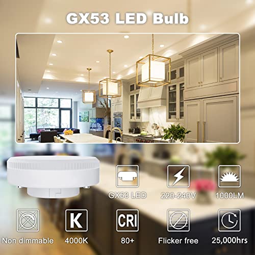 Lampadine GX53 LED, 10W GX53 LED Bianco naturale 4000K 1000LM, AC 220-240V Non Dimmerabili, Non Sfarfallanti, 2 Pezzi