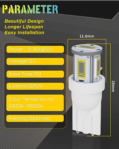 Adattabilità universale: può sostituire varie lampadine a LED T10, W5W, 501, 194, 168, 2825, 147, 152, 158, 159, 161, 168, 184, 192, 193, 194, ecc