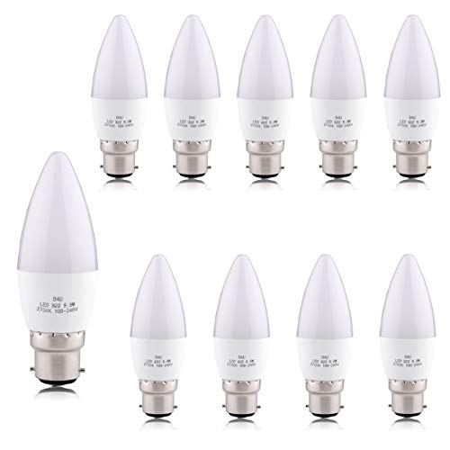 Lampadine LED Luce Calda, Lampada LED 5.5W Equivalenti a 40W, 550lm, Bianca Calda 2700K, Durata Media 30000 ore, C37 a Candela, Non Dimmerabile, 230V, attacco a baionetta B22, Pacco da 10, B4U