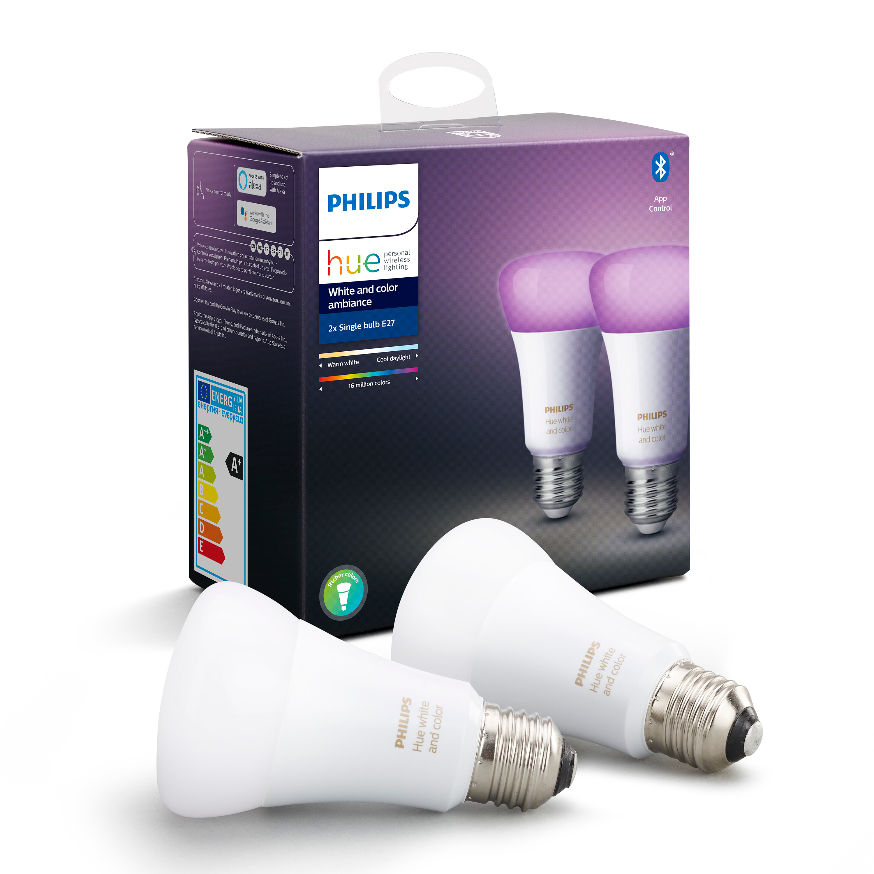 Set di 2 lampadine LED, HUE COLOR BLUETOOTH, E27;