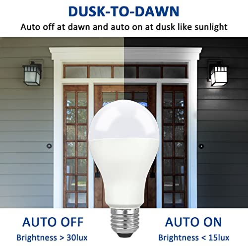 Lampadine LED Crepuscolare da Esterno 12W Luce Fredda 6000K, 1200LM, Auto On/Off, Equivalent E27 100W, AC 230V, Lampadina Crepuscolare E27 Globo con Sensore per Plafoniere da Portico, set di 2