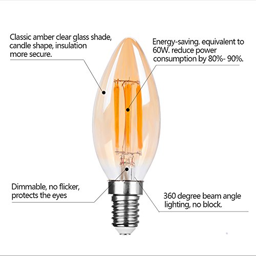 Le lampadine a candela E14 LED ambra può creare un ambiente accogliente e caldo vintage simili alle tradizionali lampadine a filamento. Perfetto per l' uso in pub, hotel, ristorante, corridoi, cucine, salotti, camere da letto, bagni e fili, illuminazione decorativa per matrimoni, luce decorativa, fissaggi ciondolo o lampadari e altre piante ornamentali infissi.