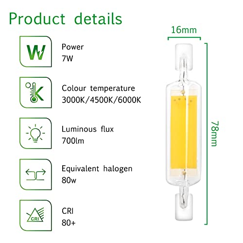 【Risparmio energetico e durevole】 R7S LED 78mm è una lampada a risparmio energetico che può risparmiare fino all'85% delle bollette elettriche. La luce LED da 7W è il sostituto perfetto per la striscia luminosa alogena da 80 W.