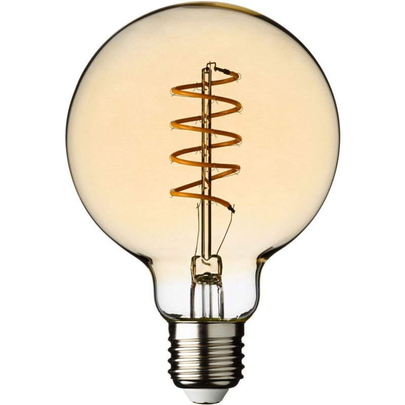 Alta 120 e larga 90 millimetri, contiene un filamento led dalla potenza di 4 Watt, che corrispondono ai 40 Watt della lampadina ad incandescenza. Sei tutta creatività? Attacca la lampadina ad una corda e falla pendere ai lati del letto o abbinala ad altre lampadine della nostra collezione per creare la tua personale catenaria di party lights. Le nostre lampadine vintage hanno un attacco E27, sono quindi compatibili con la maggior parte delle lampade in commercio. Caratteristiche: Attacco E27 Dimensioni Ø 90 x h 120 mm Vetro color oro Filamento led di 4 Watt Funzionamento a 230V ~ Non dimmerabile