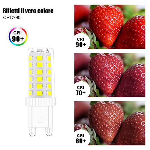 【Prestazioni eccellenti】Queste lampadine g9 led costruite con un'elevata resa cromatica (CRI>90), forniscono colori vivaci e proteggono i tuoi occhi. Costruito con 5W e 450 Lumen, la luce è più luminosa delle comuni lampadine alogene G9