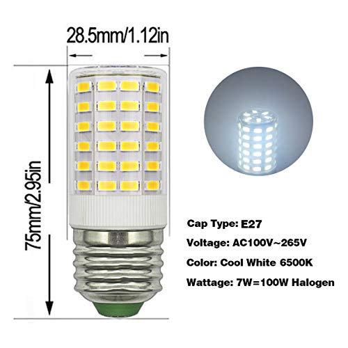 Lampadine a LED E27, 7 W, 100 W, equivalenti a lampadine a vite Edison, non dimmerabili, luce bianca diurna, 6500 K, 220 V, super luminose, confezione da 2