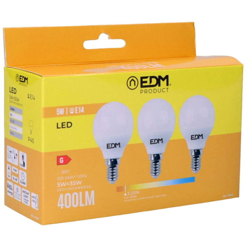 Lampadina LED E14 5W equivalente a 50W. Ombra leggera: Bianco Hot 3200K - angolo di illuminazione a 360°. 400 lm di flusso luminoso con accensione immediata. Dimensioni: altezza: 8cm ф4,5cm. Lunga vita: 25.000 ore, classe energetica A+. garanzia di 3 anni. Connessione AC220-240V. 3200K 5W 400 50W 360° 25000h Imballaggio: Set di 3 Consumo di watt: 5 W Peso: 0,0720kg Indice di protezione IP: IP20 Attacco: E14 Flusso luminoso (lumen): 400lm Durata di vita: 25000 ore Watt equivalenti: 50 W Classe energetica: A+ Température de couleur (K): 3200K Altezza: 8 cm Certificazione: QUESTO Colore della luce: Bianco caldo Diametro: 4,5 cm Dimmer per la regolazione dell'intensità: No Garanzia: 3 anni Nuova categoria energetica: G Disponibilità: In magazzino Numero di registrazione EPREL: 848501 eprel: 848501