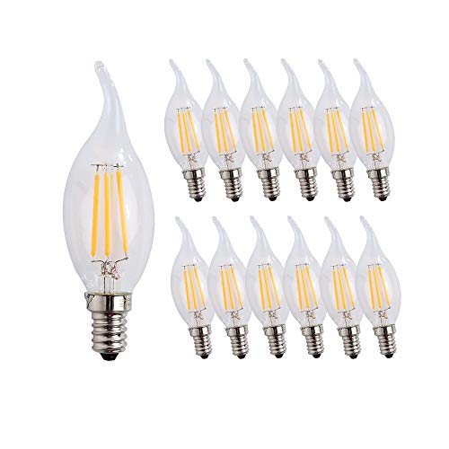 Lampadine a Fiamma di Candela LED E14, 4W Lampada a Filamento, Bianca Calda 2700K, 400 Lumen, 4W Equivalenti a 40W, 360° Angolo Luminoso, Non Dimmerabile, 12 Pezzi