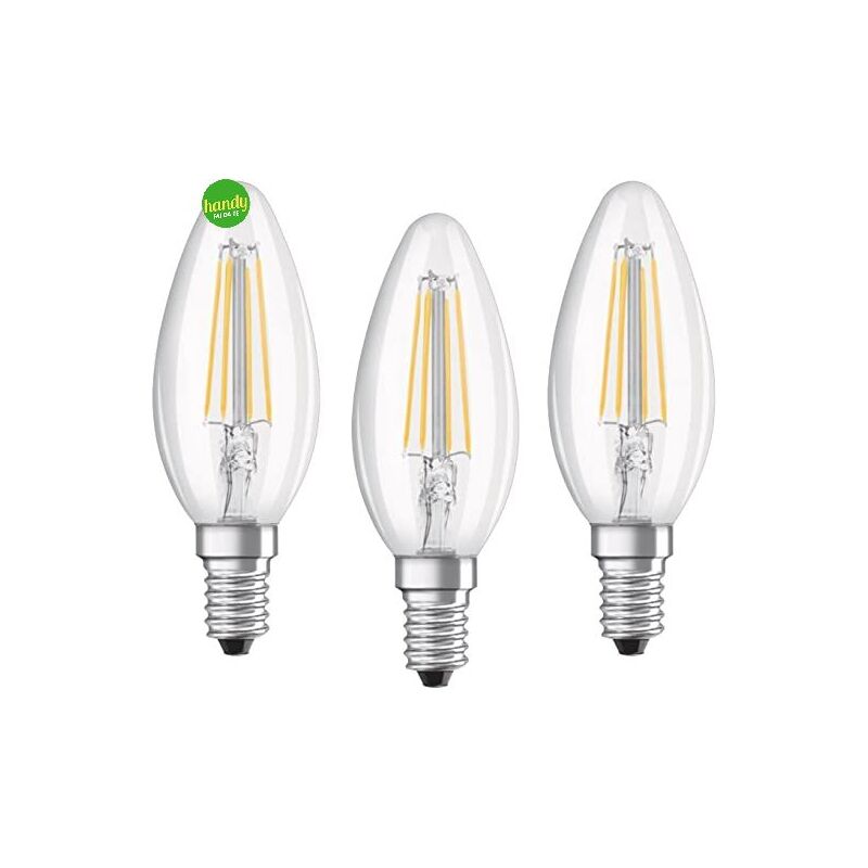 Lampadine LED del brand Osram a candela, 4W Equivalenti 40W, Attacco E14,Luce Calda 2700K, Confezione da 3 Dimensioni prodotto 9.7 x 3.5 x 3.5 cm. 13 grammi Peso del prodotto 0.01 Chilogrammi Numero di pezzi 3 Batterie richieste No Le foto sono a scopo illustrativo e potrebberoessere differenti rispetto al prodotto venduto.