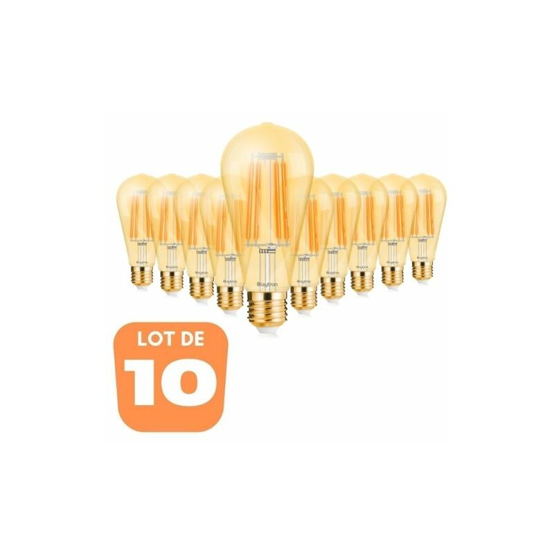 Il lotto di 10 lampadine a LED ST64 Filament 6W E27 2200K è costituito da lampadine con filamenti incandescenti con design retrò, offrendo al contempo le prestazioni delle lampadine a LED. Con la sua forma ST64 con design retrò, il suo diffusore ambra e i suoi filamenti a LED, questa lampadina è adatta a tutti i tipi di luci ma in particolare Iluminazione sospesa, vintage o neo -retro, dove è visibile la lampadina. Questo filamento ST64 LED 6W E27 22000K Dimmabile, offre una potenza di 6W equivalente a 42 W con un'intensità della luce di 510 libbre. Inoltre, è compatibile con un'unità, quindi puoi cambiare l'intensità e setacciare l'illuminazione della stanza. Per quanto riguarda il suo Kelvin Color Temperature, è 2200k che equivale a un bianco caldo. Questa temperatura di colore crea un'atmosfera accogliente e calda. È quindi adatto a camere che conducono al rilassamento come il soggiorno, le camere da letto ecc. Questa lampadina si adatta a tutti i tipi di luci con una presa E27.