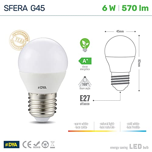 DYA - SET DA 10 LAMPADINE LED E27 con forma a SFERA - 6W EQUIVALENTI A 40W - LUCE FREDDA 6000K - 570 LUMEN