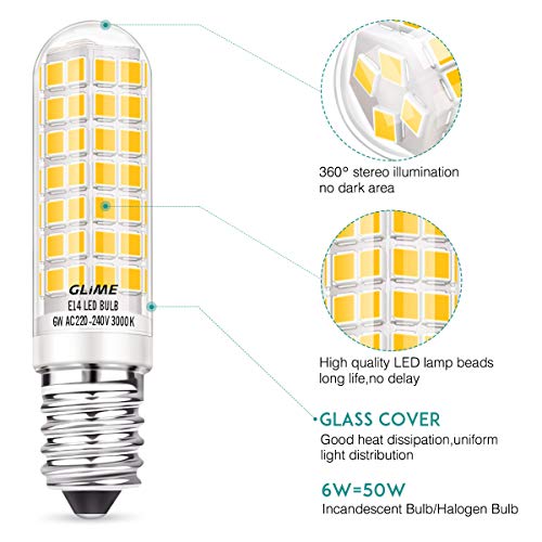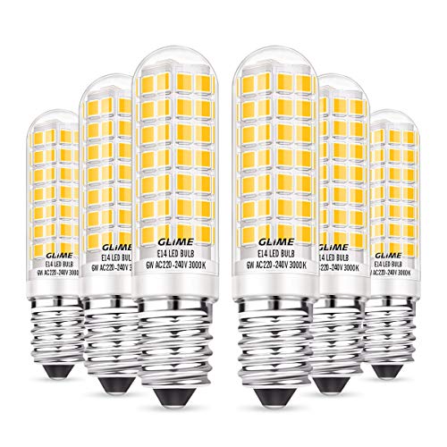 Lampadine LED, GLIME E14 Lampadine LED 6 Packs Equivalenti a 50-65W 550lm 3000K Bianco Caldo Lampadine Non-Dimmerabile 62mmx16mm
