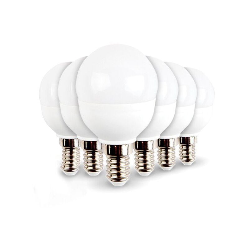 Set di 6 lampadine LED E14 Mini Globe (dimensioni pallina da golf) da 5,5 W equivalenti a 40 W. Dimensioni: altezza: 80 mm x 45 mm Questa lampadina sostituisce una lampadina alogena da 40-50W con solo 5,5 watt di piccolo consumo, ad un prezzo imbattibile. Ampio angolo di 180 ° ideale per illuminare soggiorno, soggiorno, cucina, camera da letto. La lampadina è dotata di un diffusore in plastica bianca opaca che non danneggia gli occhi e non abbaglia. Lumen: 470 (potenza luminosa di circa 40 W) Modello non dimmerabile (non funziona con dimmer) Norma CE, RoHs 2 anni di garanzia del produttore Marca: illuminazione lumen: 470 Base: E14 Classe energetica: A+ Angolo: 180 ° Tutta la vita: 20.000 heures (donnée constructeur) Alimentazione: 220 Oscuratore: Non Potenza ripristinata: Env 40W Garanzia del produttore: 2 ans Puissance (W): 5.5 Tipo di globo: G45