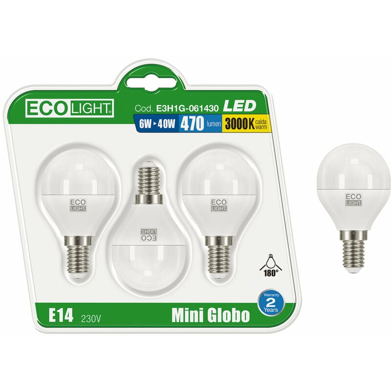 Lampadina a Led con attacco E14 (piccolo) utilizzabile su qualsiasi Lampadario o plafoniera. CARATTERISTICHE Lampadine EcoLight LED Conf. 3 pz. Consumi ridotti del 90% Attacco E14 Classe: A+ DISPONIBILI 6W ▶ 40W → 3000K - Luce Calda - 470 Lumen 6W ▶ 40W → 6400K - Luce Fredda - 470 Lumen 8W ▶ 60W → 3000K - Luce Calda - 806 Lumen 8W ▶ 60W → 6400K - Luce Fredda - 806 Lumen