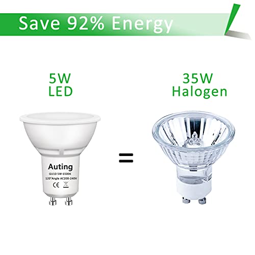 Lampadine LED GU10 5W (10 Pezzi), Luce Bianco Freddo 6500K 400LM,Pari a Faretto Alogene da 35W,Angolo del Fascio di 120 Gradi,Non Dimmerabile Nessun Sfarfallio LED Lampada