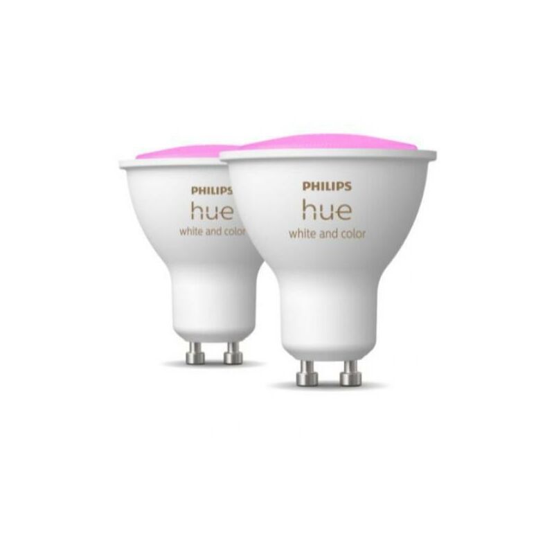 Due lampadine led Philips Hue 34008400 929001953112-Gu10 4,3W-white and color Temperatura del colore 2000K-6500K +16 milioni di colori Sistema operativo supportato -Compatibile con HomeKitYes-iOS7 or later-App Philips HueIOS 13 e versioni successive Android 8.0 e versioni successive-Assistenti vocaliAmazon Alexa Assistente Google Apple HomeKit (tramite Hue Bridge) Microsoft Cortana (tramite Hue Bridge)-App Philips Hue BluetoothiOS 11 e versioni successive Android 7.0 e versioni successive Tecnologia: Led Attacco: GU10 Alimentazione: 220-240V Gradi Kelvin (K): regolabili (tra calda, fredda e colorata) Dimmerabile (Regolabile): Si, tramite dimmer esterno Potenza Assorbita (W): 4,3 Potenza Resa (W): 35 Garanzia (Anni): Di Legge Tempo di Accensione al 100%: Immediato Grado di Protezione (IP): IP20 (lampadina da interno oppure da esterno se montata in apposito corpo illuminante) Numero di pezzi nella confezione: 2 Durata (Ore): 15.000 Dimensioni (Cm): 5,8x5