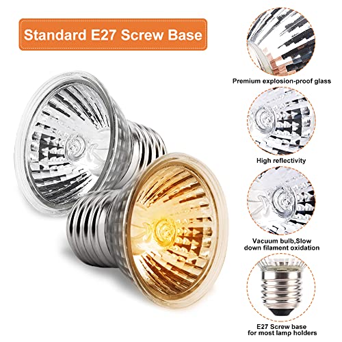 【Qualità superiore】La lampada per rettili adotta materiale in alluminio e vetro, la potenza è di 75 W, la tensione è di 110 V, le lampadine a calore rettile sono a basso consumo energetico, grande generazione di calore, durata durevole, molto stabile, riscaldabile senza radiazioni, nessun mercurio metallico dannoso. La luce per rettili UVB adotta una base a vite standard E27 per semplicità e facilità di installazione. Pertanto, puoi essere certo di utilizzare lampadine UVB per rettili per fornire luce solare al tuo animale domestico.