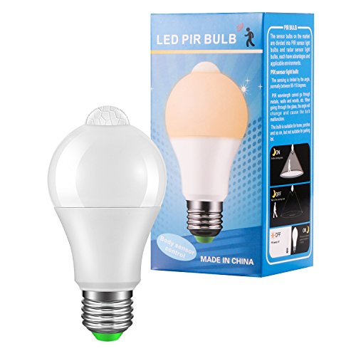 Lampadine con Sensore di Movimento a LED, SUNJULY E27 Lampadina con Sensore di Luce PIR Lampada di Accensione/Spegnimento Automatica per Esterni [Classe energetica A +] (12W 3000K)