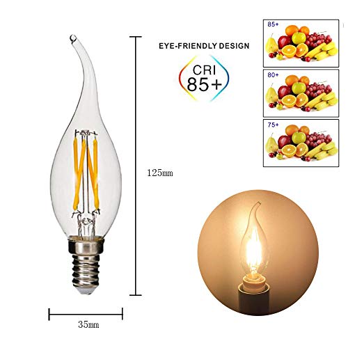 10 lampadine a LED E14, stile vintage, 4 W, C35, 400 lumen, luce bianca calda, 2700 K, E14, 40 W, equivalenti, filamento C35, lampadina a candela E14, non dimmerabile