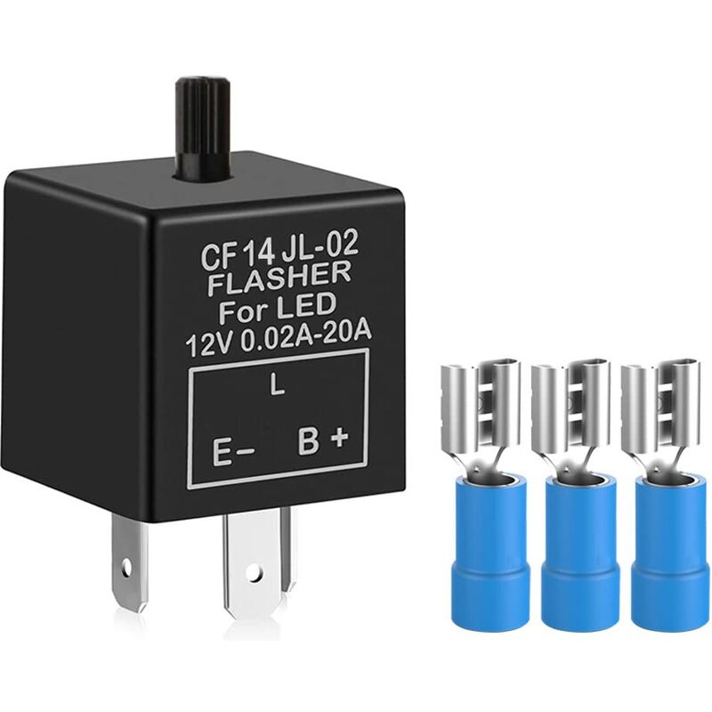 Imballaggio: 1 relè lampeggiante LED CF-14KT a 3 pin + 3 connettori a filo blu. o sostituire un relè guasto. Vestito per 12V automobilistico, motocicletta LED universale La frequenza può essere regolata entro 55-93 volte al minuto, auto-utilizzata per accenderla, molto conveniente Tensione nominale: 12 V CC, Tensione di lavoro: 8 V-12,8 V, max corrente: 20 A, durata: 400 ore di uso continuo Il relè del lampeggiatore degli indicatori di direzione è una temporizzazione elettronica altamente sensibile e stabile, un'ampia tensione di lavoro, un intervallo di temperatura e una lunga durata.